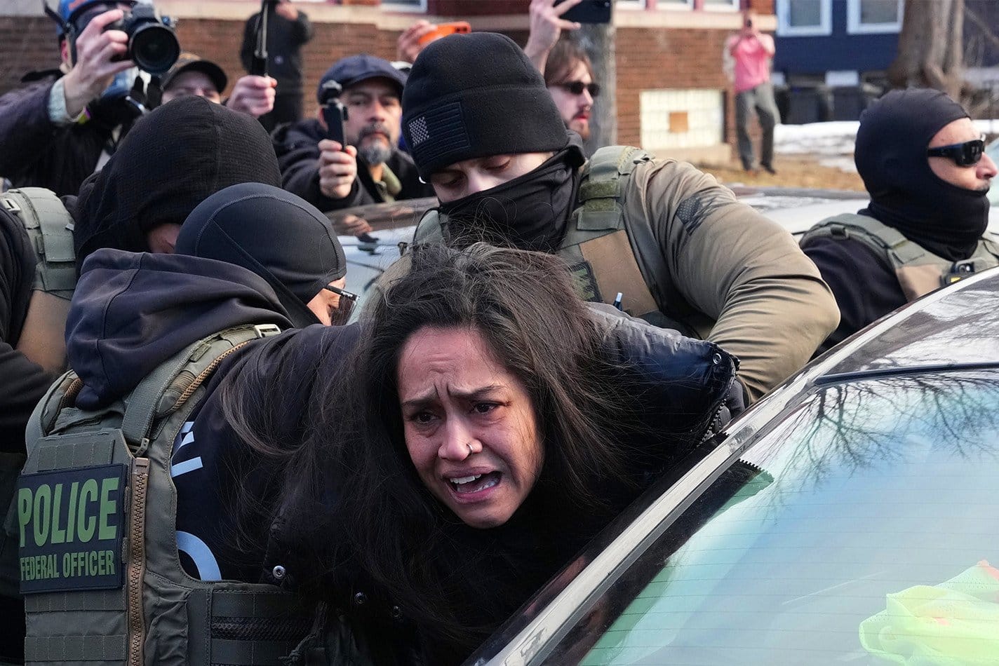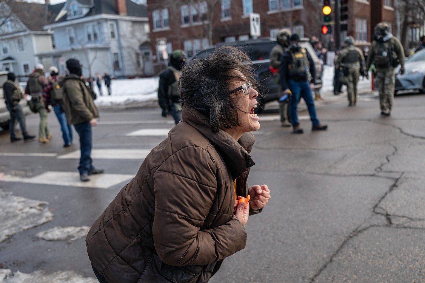 这场集会被反对ICE的抗议者包围,他们向兰的支持者投掷雪球和水球。在附近的圣保罗,涉嫌证件不全的居民被从车内带走。